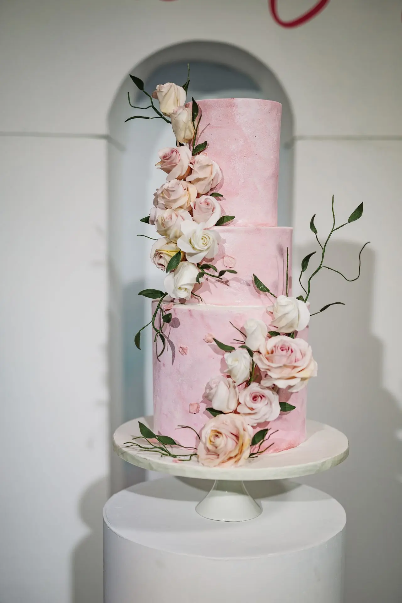 Then came wedding day—and it started with a twist. Instead of a quiet morning, they hosted the “Bernie & Rexx Marathon,” a 5K fun run named after their pups. Guests crossed the finish line to cheers (and cutouts of the dogs) and were awarded pink medals. High-energy, a little quirky, and totally them.