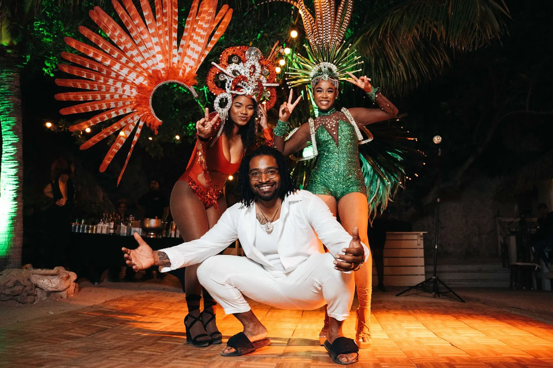 From the moment guests arrived, serenaded by the smooth sounds of a saxophonist, to the lively cocktail hour accompanied by a talented guitarist, the atmosphere was electric. As day transitioned into night, a DJ took the stage, keeping the dance floor alive with infectious beats. But the real showstopper? Carnival dancers and mesmerizing fire breathers, igniting the night with their incredible performances!